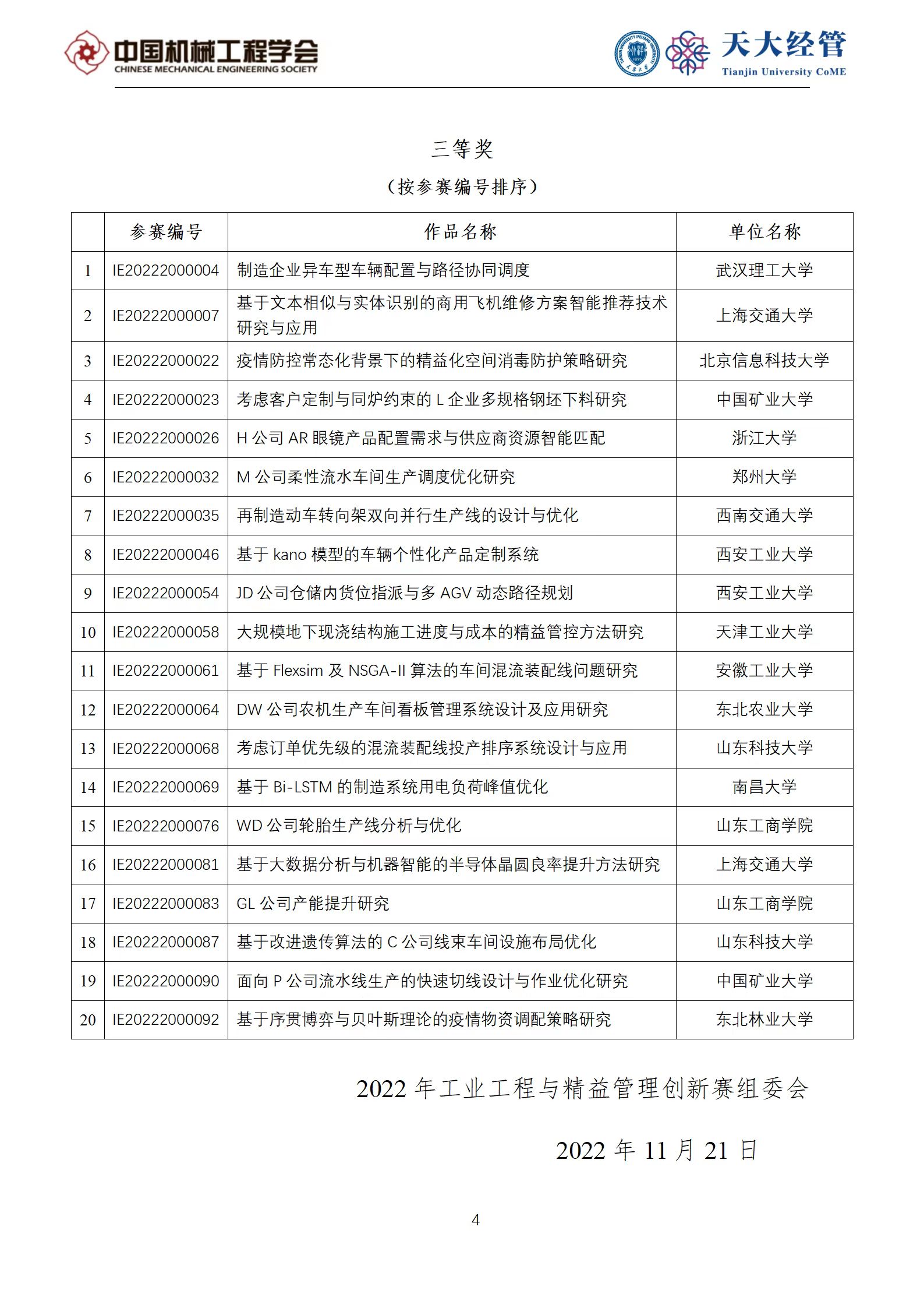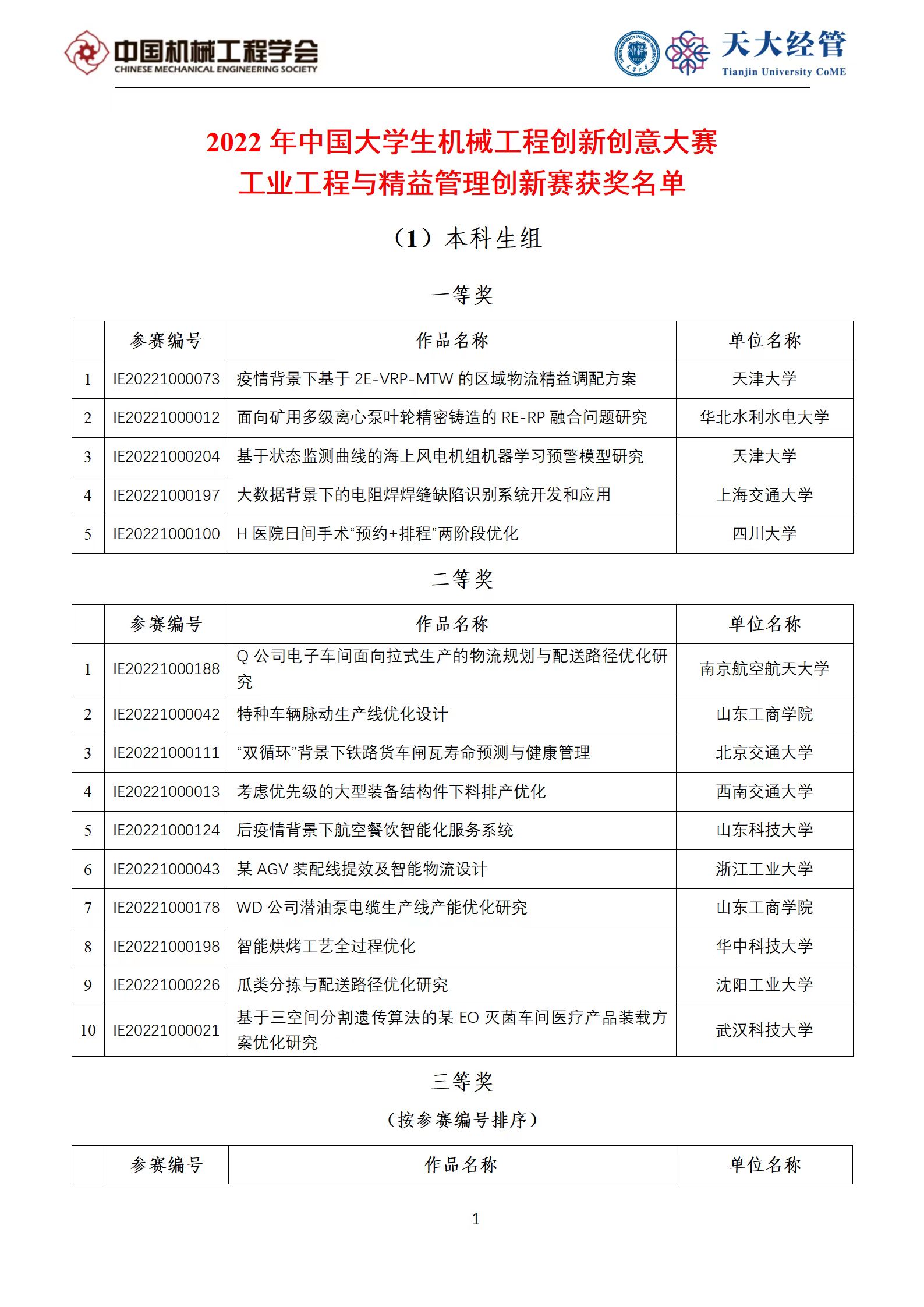 2022年中国大学生机械工程创新创意大赛·工业工程与精益管理创新赛获奖通知