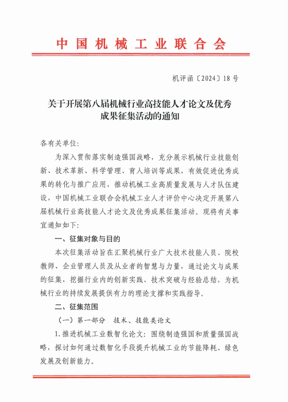 关于开展机械行业论文和成果征集活动的通知